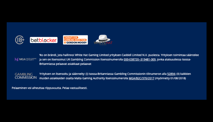 Asiakkaana sinun tarvitsee vain selata kasinon etusivun alareunaan ja katsoa, millaista tietoa siellä olevasta niin sanotusta alatunnisteesta löytyy. Alatunniste on lähtökohtaisesti jokaiselta nettisivustolta löytyvä tekninen tila, johon kerätään sivustoa koskevat tärkeimmät tiedot.